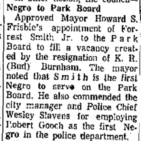 The town of Moberly found itself on the cusp of progress as the Moberly Monitor-Index and Moberly Evening Democrat published a historic announcement. Mayor Howard S. Frisbie had made a significant decision, appointing Forrest Smith Jr. to the Park Board, filling the vacancy left by the resignation of K. R. (Bud) Burnham. This appointment was not just a routine administrative change; it marked a milestone as Smith became the first Negro to serve on the Park Board.