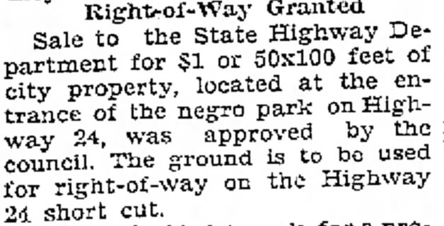 The decision was emblematic of progress and practicality. The Moberly Monitor-Index and Moberly Evening Democrat reported the city council’s approval of a sale to the State Highway Department, a transaction that would pave the way for future development. The council had agreed to sell a parcel of city property, measuring 50 by 100 feet, for the nominal sum of one dollar. This tract of land, situated at the entrance of the Negro Park on Highway 24, was destined for a new purpose.